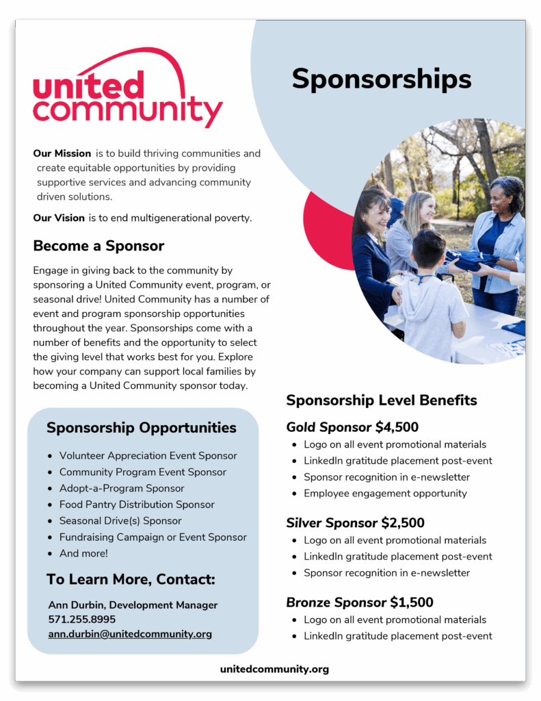 As an Annual Corporate Partner with United Community, your company will be eligible for numerous benefits, including: